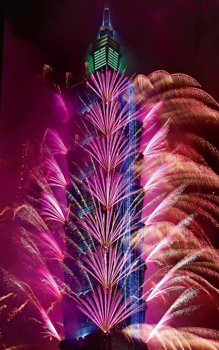 台北市地标101大楼施放1万6000发烟花庆新年。