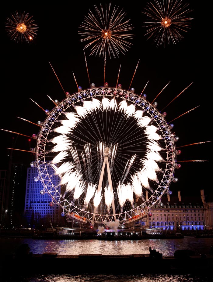 世界级耀眼摩天轮 英国伦敦眼烟火灯光秀跨年