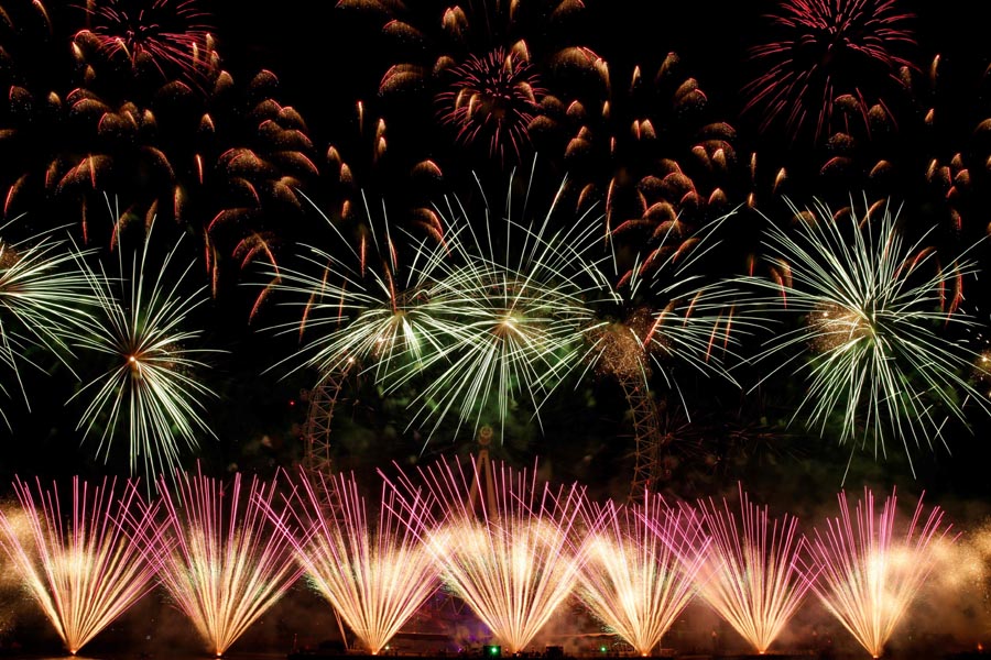英国以璀璨的烟火迎接2019。(法新社照片)
