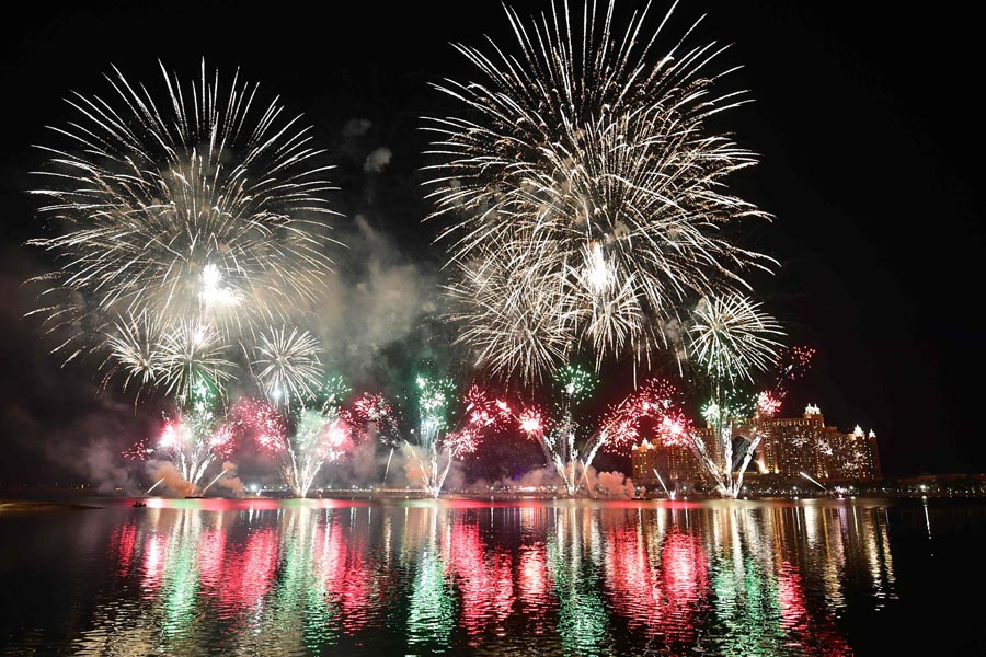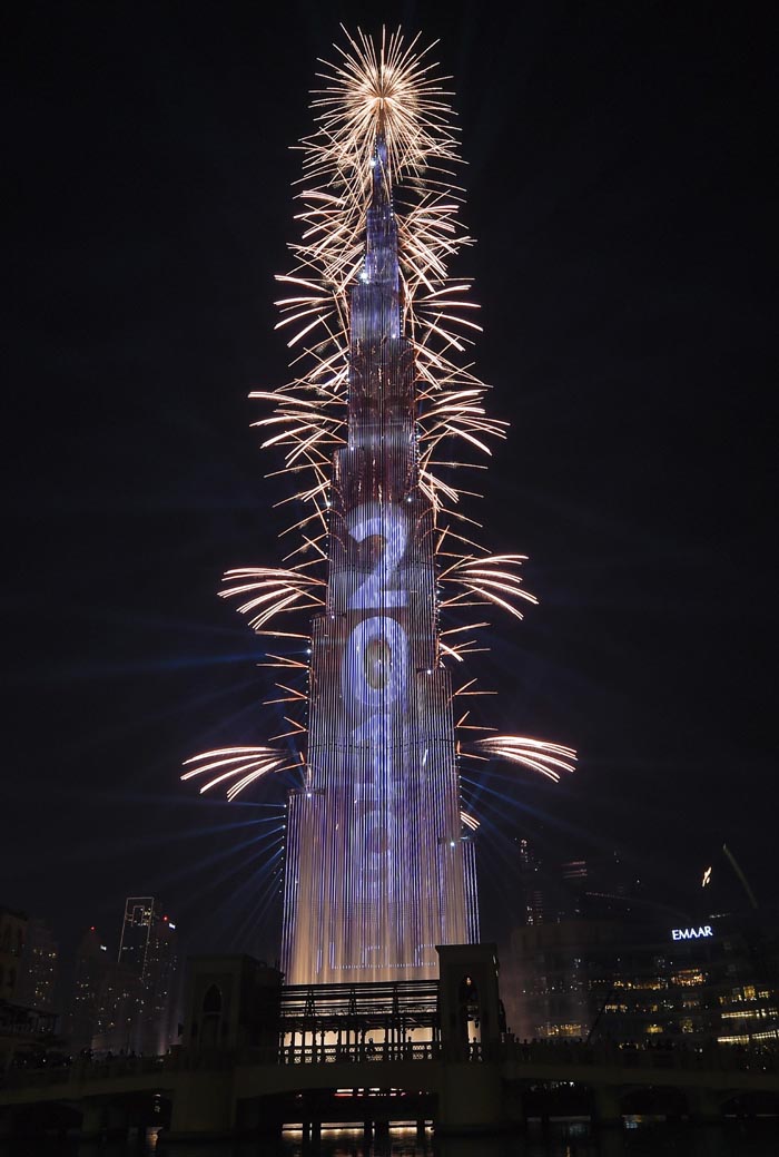 阿拉伯联合大公园经贸大城杜拜在大马时间1日凌晨4时跨年倒数,最吸睛的节目当然是在目前全球第一高楼“哈利法塔”的跨年秀。去年创新没有放烟火,而是以灯光秀取代,把高楼化身为不断变换色彩的钻石,眩目耀眼。今年则以“更大、更棒、更璀璨”的烟火秀迎接新年。杜拜其他知名景点,包含帆船饭店、棕榈岛亚特兰提斯酒店也同步施放烟火,让整场跨年秀更壮观。
