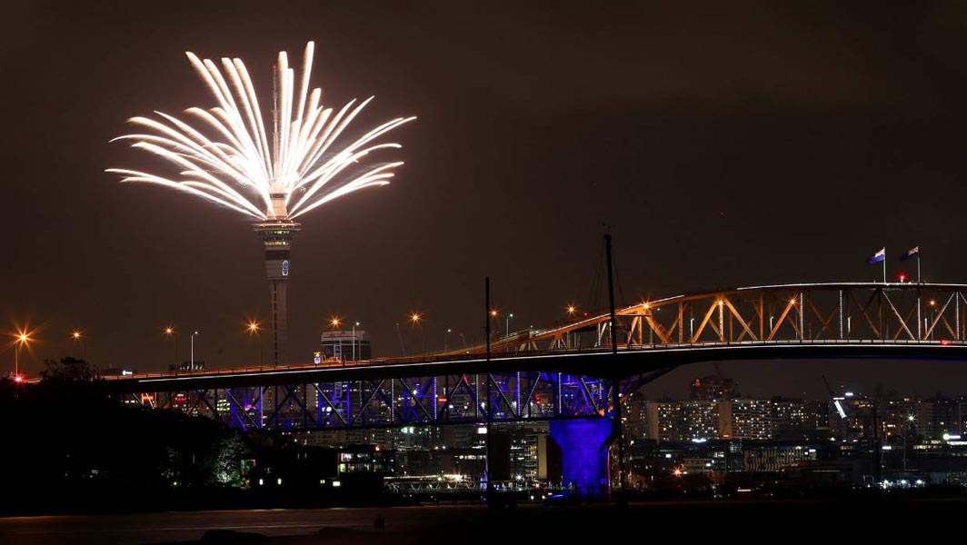 纽西兰最大城市奥克兰“天空塔”有5分钟的烟火秀。