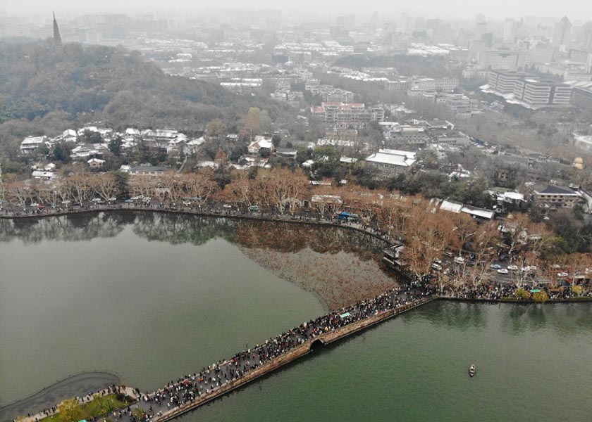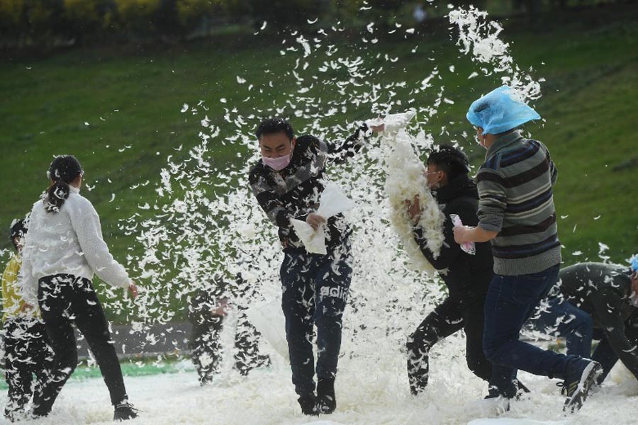 至于在浙江杭州的西湖景区,周一人潮如鲫,一众游客沉醉在西湖美景中,迎接2019年到来;而在重庆忠县的花田溪谷景区,则举行了别开生面的“枕头大战”活动,不少游客前往体验,以这种新颖的娱乐方式缓解压力之余,也取其送走旧岁,迎接新年的意头。