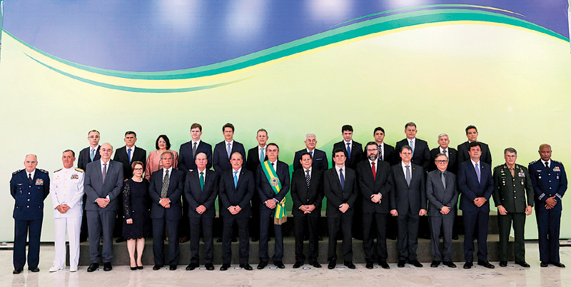 博尔索纳罗与新内阁成员合照。(法新社照片)