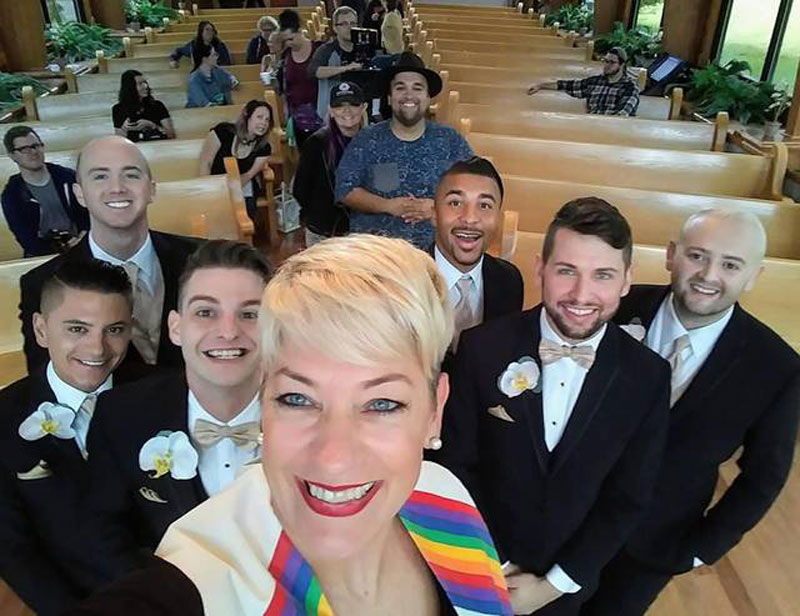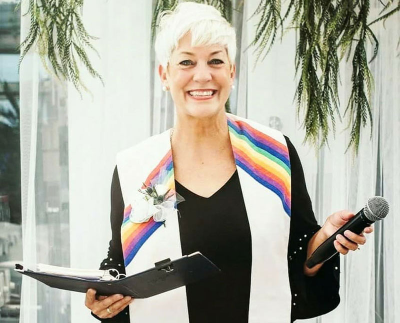 (华盛顿5日综合电)性向与恋情不被血亲接受,往往是LGBTQ族群最难过的一关。美国一位妈妈在儿子出柜时,起初也非常抗拒;她花了三年时间理解,最终改变看法。去年,她在社群网站上公开表示,若有同性恋者的母亲不愿参加婚礼,她愿意出马。她不但是个妈妈,还是个民事庭认可的牧师,有资格证婚,目前已为10对左右的同志伴侣主持婚礼。