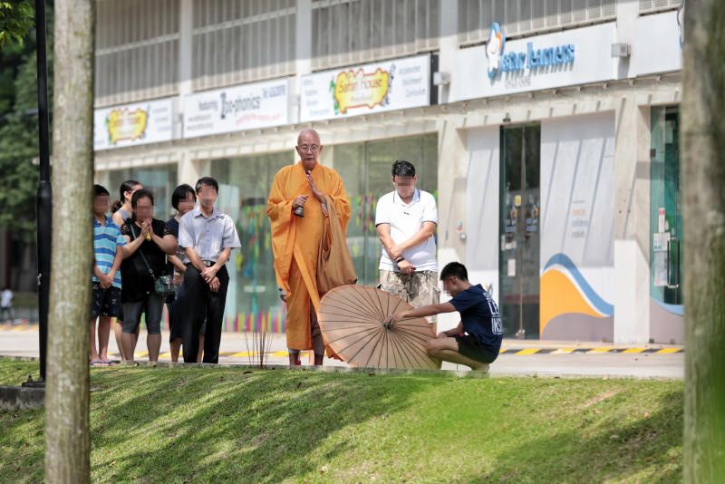 死者父母、哥哥和姐姐周日下午2时许回事发地点,在法师的陪同下诵经招魂大约半小时。一家人神色哀伤,母亲更数度双手捂脸,忍不住落泪。