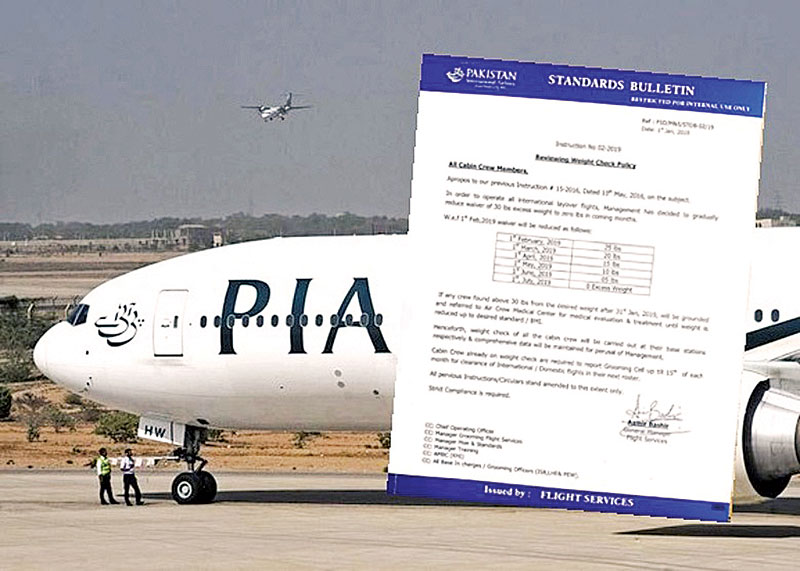 (伊斯兰堡7日综合电)巴基斯坦国际航空公司在元旦日向1800名员工发出备忘录,要求过重的员工在半年内减磅,否则不获安排于机舱执勤。