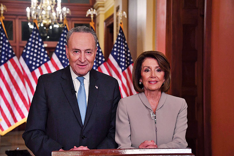舒默(左)及佩洛西(右)批评特朗普的演说。(法新社照片)