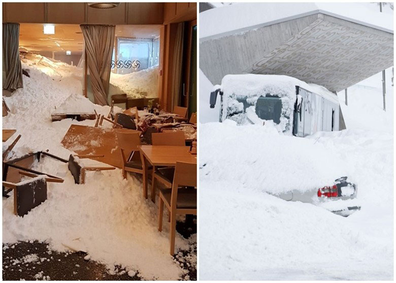 事发于瑞士阿尔卑斯山桑蒂斯酒店,当时宽达300米的雪崩直冲入餐厅,传出巨响。停车场亦有多达25辆车被大雪掩埋,包括一辆大型旅游巴。