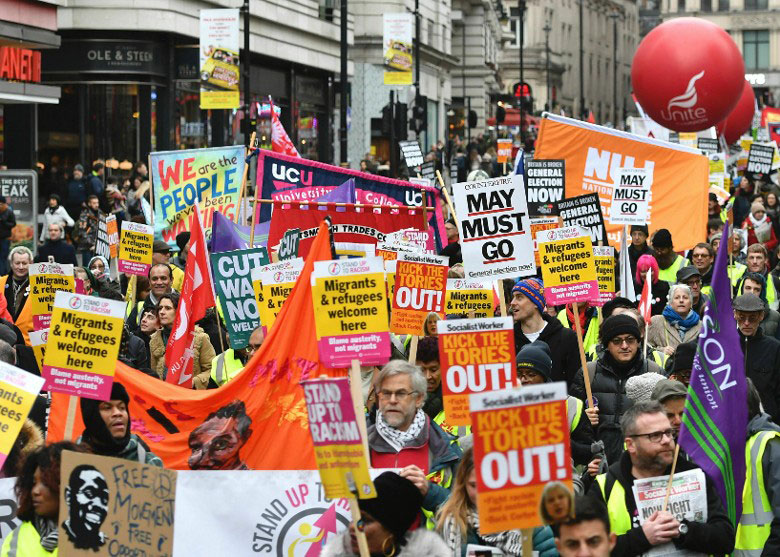 参与游行的工党影子财政大臣麦祖恩说,他们周二(15日)会否决特丽莎梅的脱欧协议草案,再在适当时机向政府提出不信任动议。