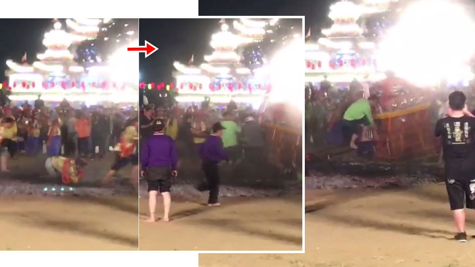 从现场拍下的短片可见,过火仪式开始后,10多名男子冲过地上炭火,有人不小心摔倒,后面而来的信徒扛着神轿撞了上去,众人倒在炭火上。