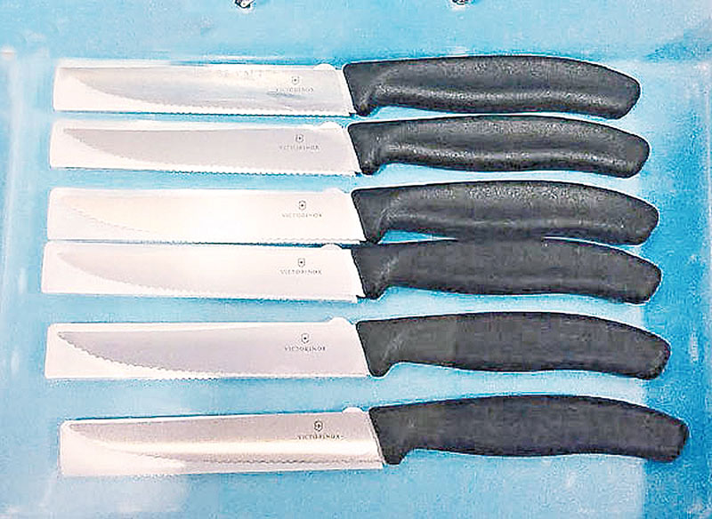 消息透露,一名旅客本月2日在香港国际机场乘搭飞机前往日本,其手提行李内藏有6把锯齿刀,根据记者获得的照片可见,该6把刀为瑞士品牌的切肉刀,全长28厘米,单是刀锋已近12厘米,有波浪形及尖锐的刀刃,刀锋非常锋利。而根据X光机照片所见,行李内显示了刀身的影像,肉眼不难发现。