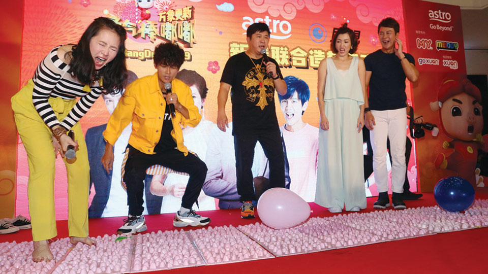(吉隆坡14日讯)台湾综艺节目《综艺大集合》主持胡瓜、阿翔和谢忻及台湾本土剧演员廖家仪和王灿趁着到古晋出席《第23届亚洲电视大奖》,多逗留1天到吉隆坡跟粉丝朋友见面玩游戏,送现金及派送礼物,向大家拜个早年。胡瓜和阿翔在媒体联访时更预告,《综艺大集合》将在5、6月拉队来马拍摄,而大马更是《综艺大集合》开播以来首个也是唯一一个海外拍摄国家!