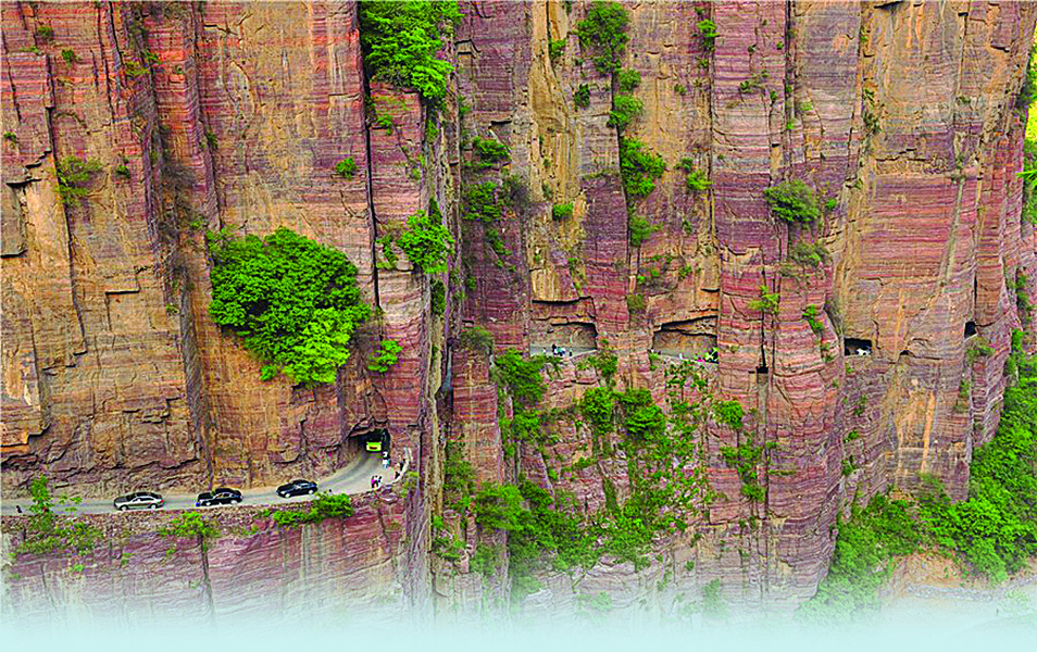 1972年为让乡亲们能走下山,13位村民在无电力、无机械的状况下全凭手力,历时5年,硬是在绝壁中一锤一锤凿出全长1300米的石洞。