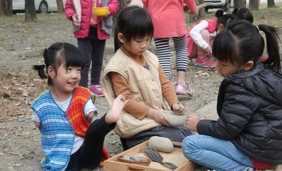 幼儿园老师吴惠琴表示,又立去年9月到幼儿园,班上共28名小朋友,都很喜欢又立,又立个性活泼开朗,很积极参与班上活动,甚至学校举办户外闯关游戏,又立都坚持全程参与,让身为老师的她相当感动,因为又立的积极,等于在鼓励周边的人要有向上的心。“又立这孩子真的有无限可能。”徐爸爸这样说,因为没有双手的又立,也没有人教她,居然自己学会吃饭,还在学校看到老师在教陶笛,回家就吵着要买陶笛,居然也学会了。