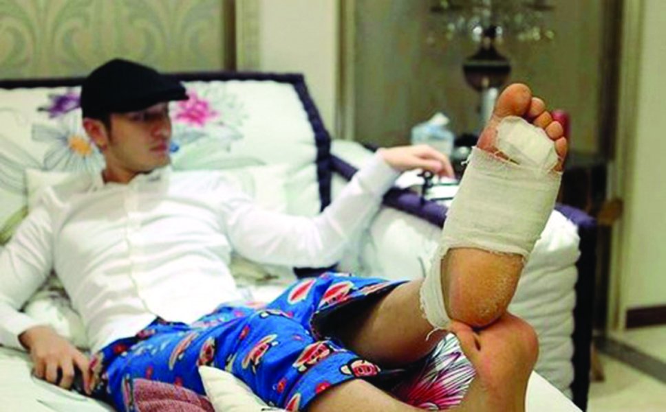 (北京16日讯)黄晓明2012年11月拍摄《白发魔女传之明月天国3D》时,吊钢丝从3公尺高坠地,造成左脚2脚趾粉碎性骨折,左脚共钉上4根钢钉与2根钢针。他昨日表示:“左脚是我的独家限量高脚背,天生高脚背,出过事故后导致组织增生,脚面高上加高,穿很多鞋都很痛苦,就想问问天生高脚背的朋友们:那种鞋面很高,穿起来不会挤脚的鞋哪里能买到?”一番澄清展现高EQ又不失幽默。