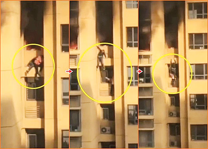 (济南19日综合电)到了生死关头,人类往往可以发挥不可思议的力量,胆量亦会随之提升。山东青岛尊邸小区6座25楼一个单位,周五发生大火;两名被困男女在危急之际,竟爬出窗户,试图跳到楼下逃生,过程十分惊险,令楼下围观市民惊呼连连。