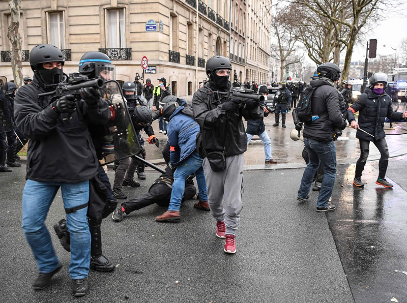 虽然巴黎的示威到尾声有人掷石及水瓶,警察要施放催泪气及开水炮驱赶,但示威已经连续两个星期没有造成混乱和破坏。内政部指,此次全国有8万4000人上街,与上一个星期相若,单在巴黎则有7000人,比之前的一周少了1000人;全国出动8万名警察维持治安。