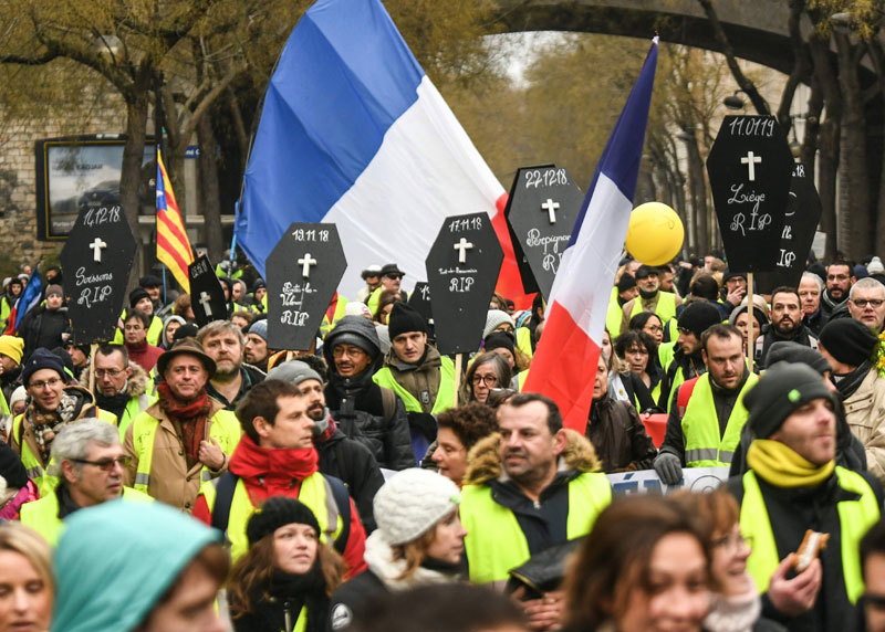 黄背心示威于去年11月17日爆发,示威者初时以和平手法,反映对政府征收燃油税和其他措施的不满,但其后演变成暴乱。示威者在街头烧车,打破店铺橱窗,甚至乘机掠夺货品。