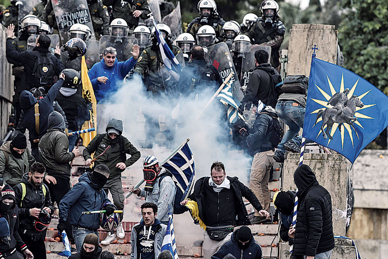 (雅典21日综合电)希腊首都雅典于周日有数以万计民众上街示威,抗议政府与邻国马其顿,达成更改马其顿国名的协议,示威者与警察冲突,包括警察在内数十人受伤,至少7名示威被捕。