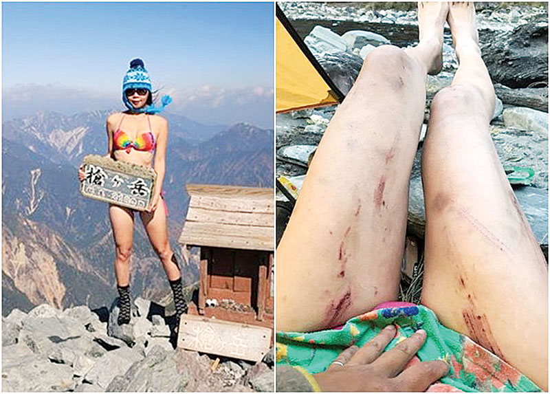 据知,她在5年前接触登山活动,因为和朋友开玩笑打赌,便开始登台湾百岳,并穿不同比坚尼在山顶留影。而在过往的攻顶过程中,她也曾遇过挫折,如去年12月她便发文附图透露曾在断崖失足,滑落好几米,还称“我真的算捡回一命”。