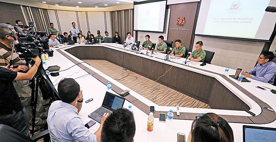 新加坡三军总长王赐吉中将周四率陆军总长吴仕豪少将、作战后勤支援指挥部司令陈君有上校、陆军军医长卢宏一上校,以及国防部人力司司长李忠伟召开记者会,交代初步调查结果。