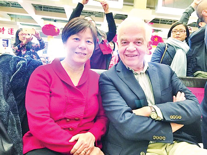 妻子林秀英(左)是大马华裔。麦家廉曾指出,其家庭对中加友谊有很大贡献。