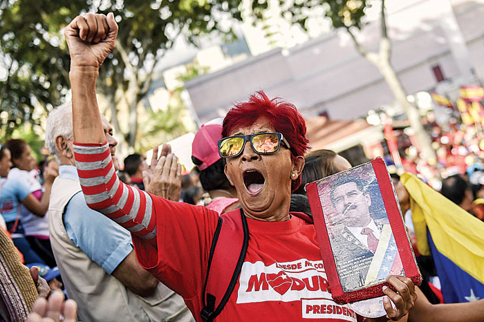 马杜罗的支持者穿上红衣示威。(法新社照片)