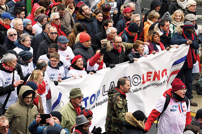 (巴黎28日综合电)法国“黄背心”反政府示威已连续11周举行活动,瘫痪大半个法国,有民众看不下去,周日发动“红围巾”与“蓝背心”游行,表明反对“黄背心”的激进示威,呼吁终结暴力。