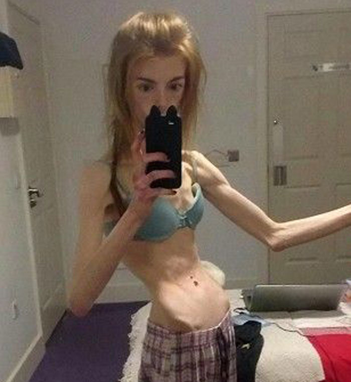 据英国《太阳报》报导,温德利在15岁时,对于体重非常在意,对饮食更是有莫名的恐惧,深怕会不知不觉长肉,但也因此罹患厌食症,体重曾经掉到29公斤。而且当时温德利正处于青春叛逆期,与父母关系不好,骨瘦如柴的她,外型更是被其他同学嘲笑或霸凌,但温德利依旧拒绝进食碳水化合物、奶制品和肉类,把自己的外型搞得像丧尸一样。