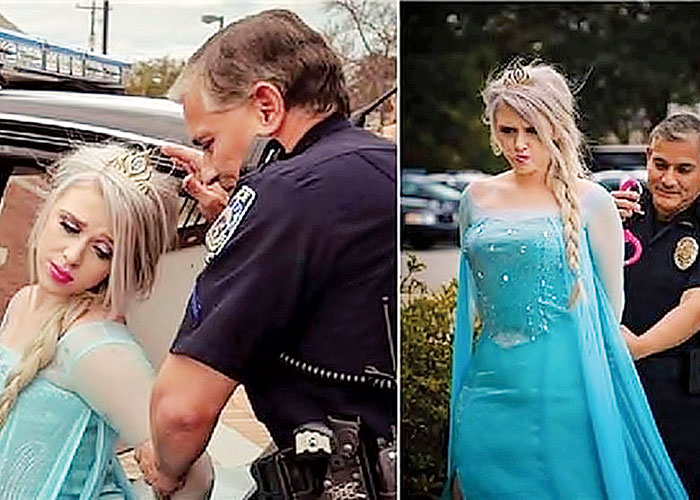 伊利诺伊州麦克林县警方周二(29日)在脸书贴图开玩笑,可见一名警员用粉红色手铐锁起打扮成艾莎的金发女子,并留言称:“注意!因应极度严寒的天气,所有罪案及愚昧行为都被取消。即使艾莎也要被捕,不准保释,直到另行通知。”但有网民发现警方涉嫌“偷图”,指他们可能因而惹官非。