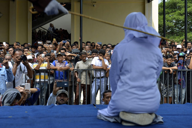 在印尼目前唯一实施伊斯兰法的亚齐省,2名18岁男女青年因在公共场合搂抱,触犯伊斯兰法律规定,在一座清真寺外各被鞭刑17下。当时约百名观众聚集观看两人被鞭。