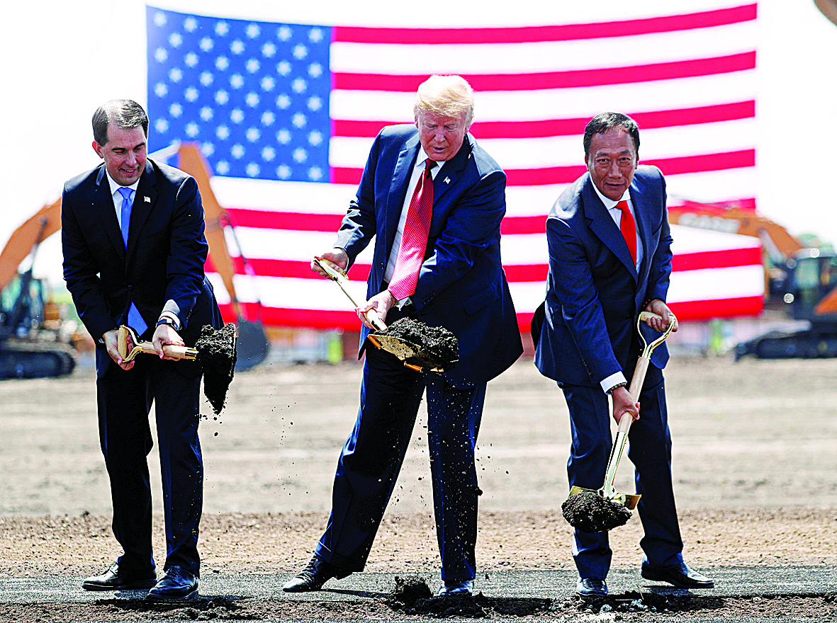 (台北综合电)台湾鸿海集团在美国威斯康辛州豪掷百亿美元设厂计划传出可能生变,美国总统特朗普已介入、并与鸿海集团董事长郭台铭通话,富士康周五发表声明表示,持续推动威谷科技园区打造第6代面板厂的计划。