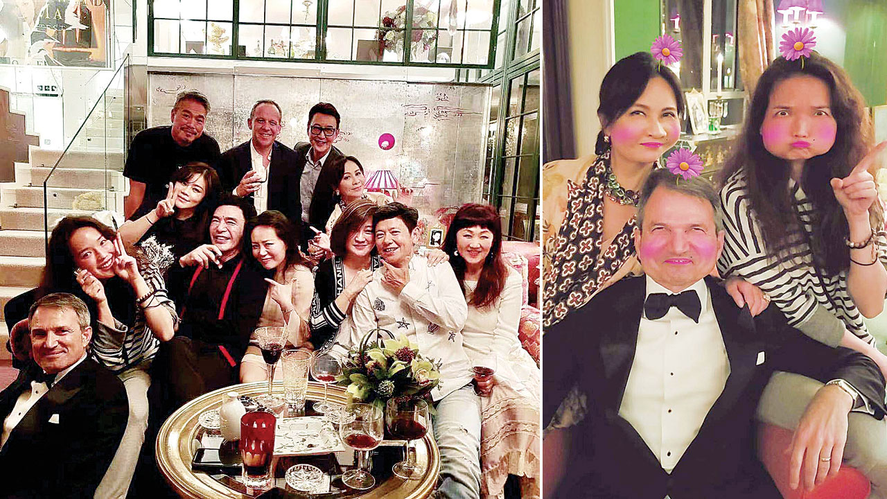 刘嘉玲邀一群好友到家中聚会,很是热闹。(右)刘嘉玲与舒淇可爱搞怪出镜。