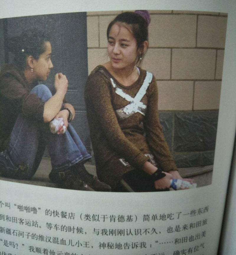 虽然书中文字描述让作者惊艳的是“打电话的维族女子”,但作者配图却是2名在街边聊天的女孩,其中一位正是迪丽热巴,可见当时她也让作者留下深刻印象。