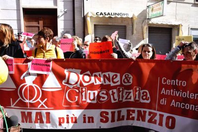 大批民众前往意大利安科纳法院外抗议“恐龙法官判决”。