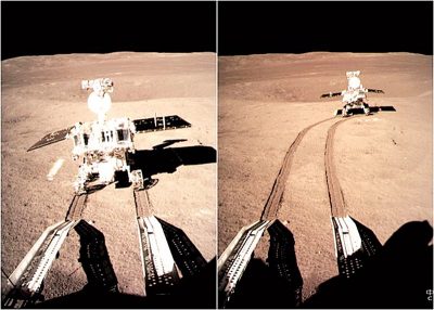 成功登陆后,玉兔二号与着陆器分离,展开月表探测,并留下第一道痕迹。2月11日,玉兔二号再次进入月夜休眠模式,当时已累计行驶共计约120米。同月28日,玉兔二号自主唤醒,截至3月1日行走正常。