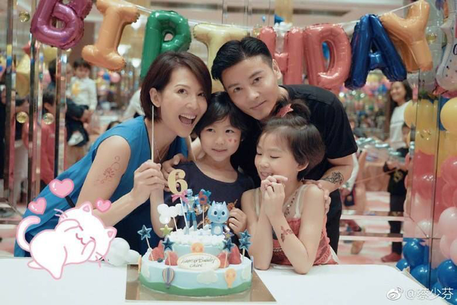 蔡少芬、张晋育有一对女儿,一家四口生活幸福美满。