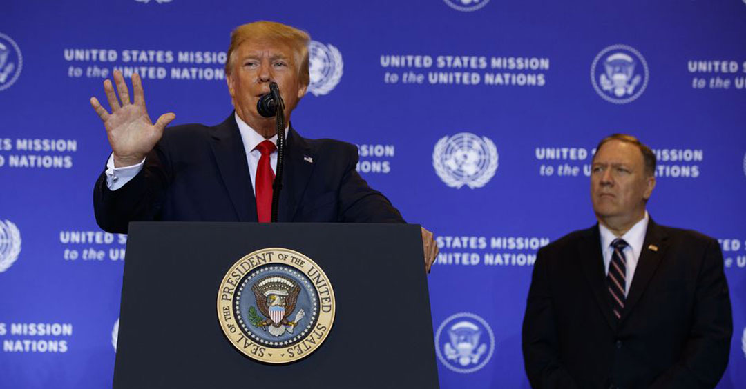 特朗普(左)“通乌丑闻”事件持续发酵,众议院展开弹劾调查,国务卿蓬佩奥(右)发出传票,要求他提交相关文件。