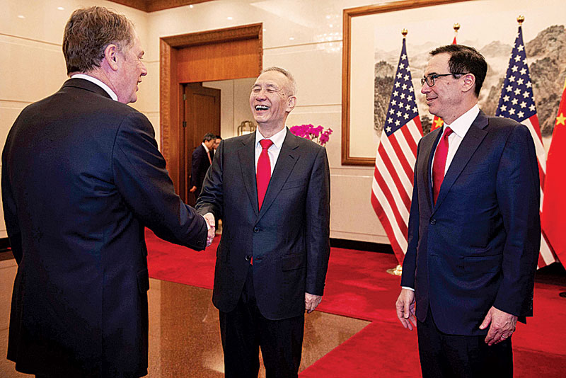刘鹤(中)将在十一后赴美,进行第13轮经贸高级磋商。