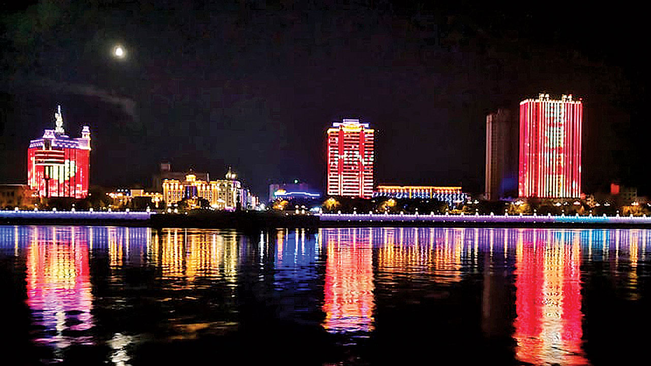 “中国东北好风光、尽在黑龙江”!黑龙江省不只大力建设旅游强省,当地教育、科技、医疗、商贸及工业等各领域取得不断发展成果。图为黑河市的夜景。