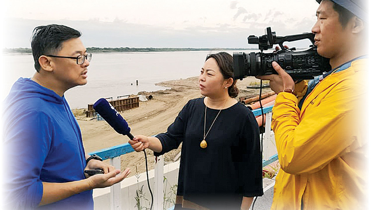 本报执行总编辑林松荣在参访该大桥时,也接受黑河电视台记者的访问。
