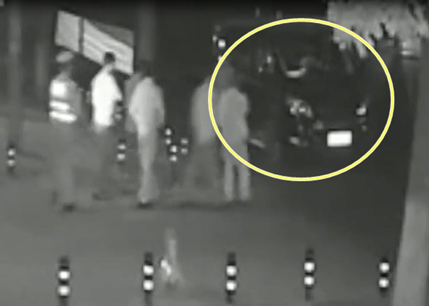 男子故意酒后驾车(黄圈示)至交警大队门口。