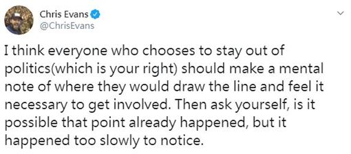 饰演漫威英雄“美国队长”的基斯伊云斯在推特上发文呼吁大家多关心政治,但这番话被中国网友解读为是帮NBA和香港示威者说话,因此在网路上号召,坚决抵制漫威,绝对不再进影院支持。