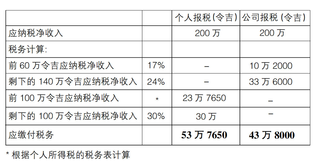 那如果你的独资企业一年拥有200万令吉的净收入,你就应该考虑转换成有限公司。这样一年来可以省下至少9万9650令吉的税务!