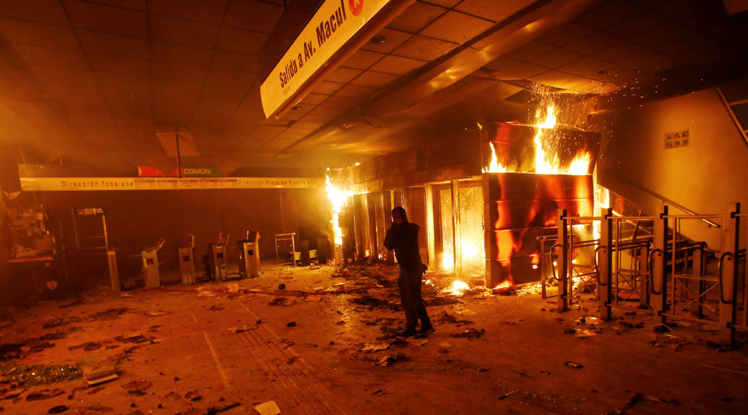 圣地亚哥多个地铁站遭到汽油弹攻击,迫使地铁关闭。