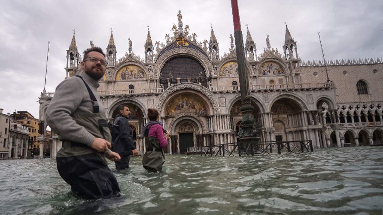 威尼斯大潮后海水倒灌,政府周四宣布当地进入紧急状态。最高峰时期,当地的水深达1.87米,至少造成2人死亡。政府周五关闭圣马可广场,后来周六重开。市内水位周六降至1.1米,因此当局将天气警示由红色警示,下调至较轻微的橙色警示。不过,当局预计,周日的水位会再次升至1.6米。