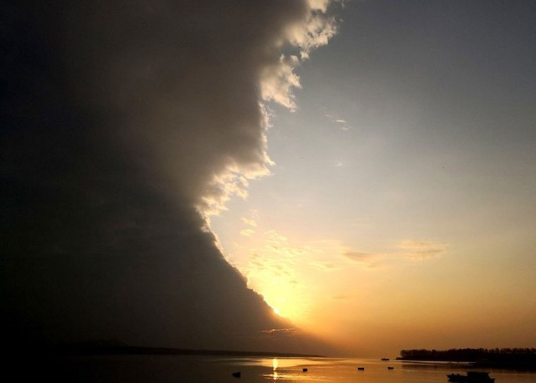 中国安徽省巢湖市周四(21日)傍晚,天空中出现一道奇观。由网民拍摄的图片可见,天空一分为二,一边万里无云,一边云层厚积,一‘阴’一‘阳’,界线清晰分明,蔚为奇观。