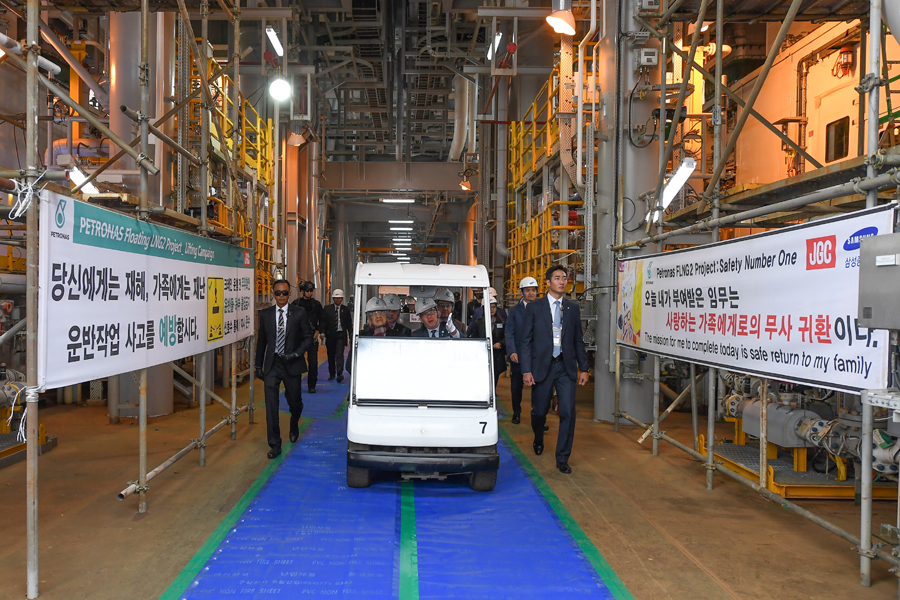 首相敦马哈迪医生对国油第2个浮式天然气液化装置(PFLNG Dua)能勘探至1500公尺深海天然气的技术,感到赞叹。