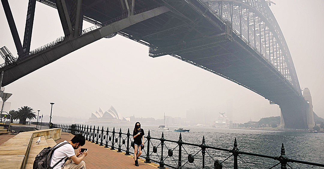悉尼歌剧院被烟雾笼罩。