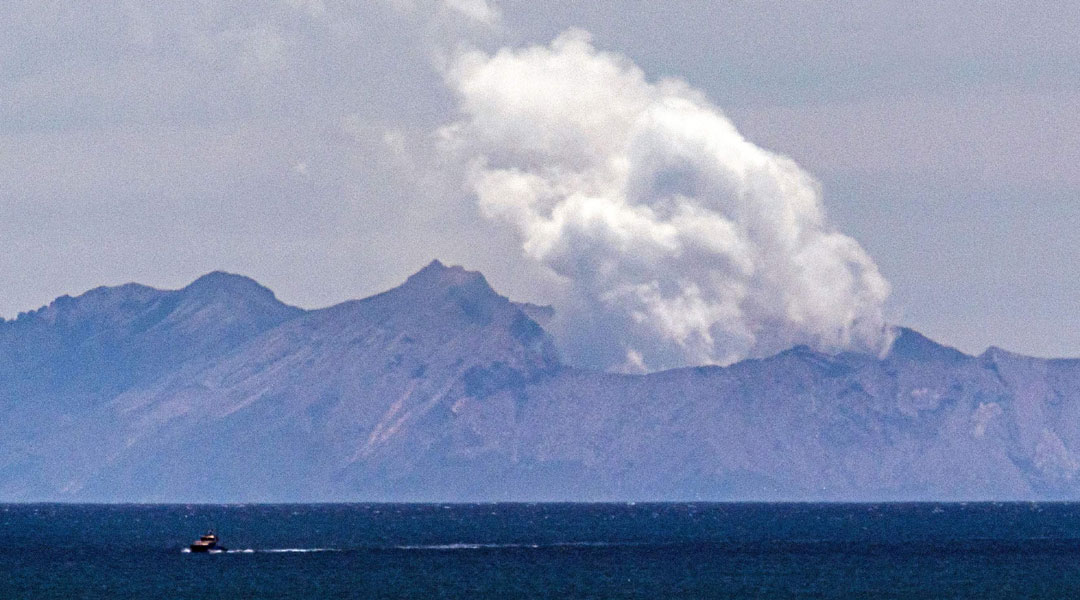 怀特岛火山仍喷出蒸气。(法新社照片)